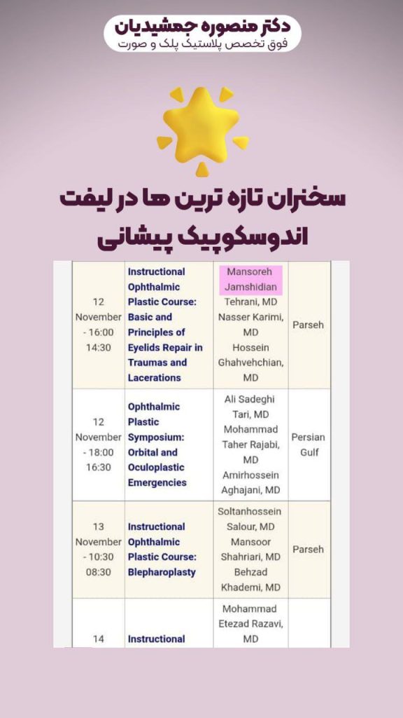 حضور دکتر جمشیدیان در کنگره سراسری چشم و ارائه تازه های لیفت و تروماهای صورت